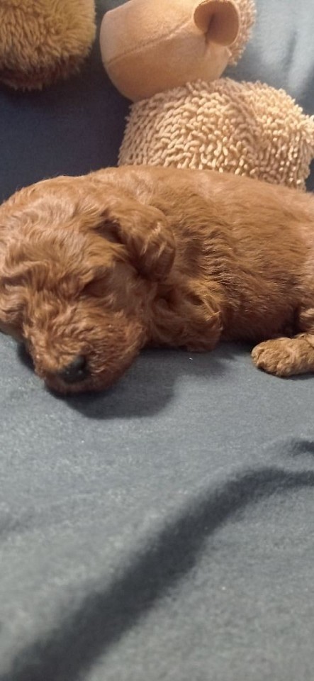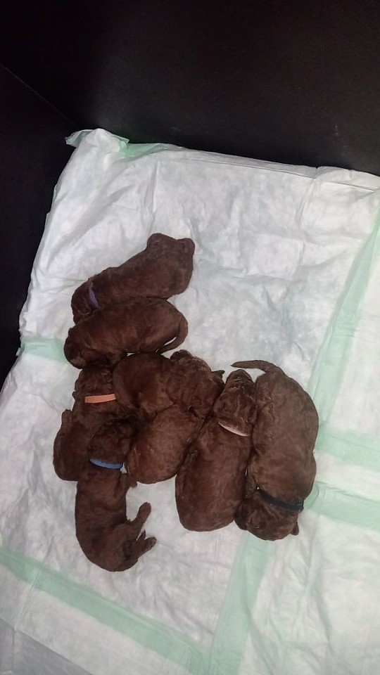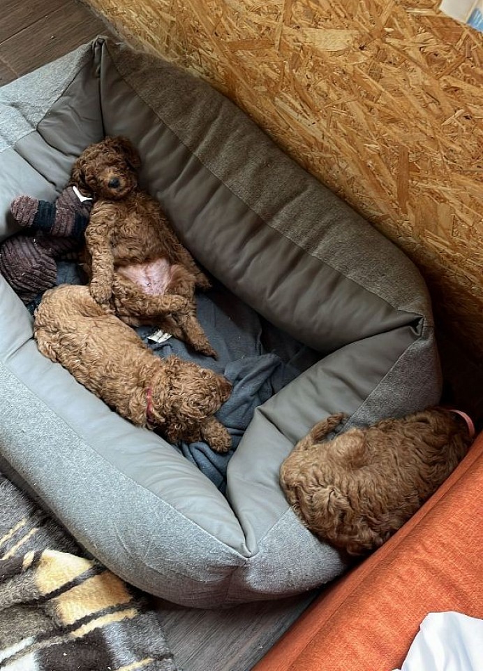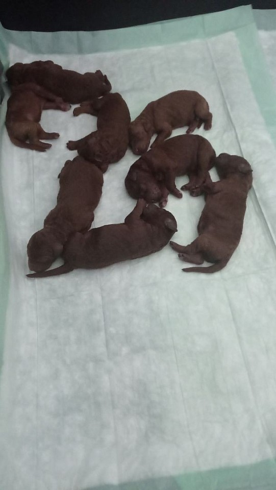 Unsere Königspudel Hündin Cheyenne (Chewy) hat am 22.05.2024 ihren ersten Wurf bekommen. 8 wunderschönen Welpen haben das Lichter der Welt erblickt. 6 Mädchen und 2 Rüden sind es geworden. Auf unsere Mama sind wir ganz stolz sie kümmert sich super und sehr liebevoll um ihren Nachwuchs. Die Welpen wachsen die ersten Wochen bei uns zu Hause auf und wenn sie größer sind kommen sie mit in den Garten. Außerdem wachsen die Welpen in der Familie auf womit sie auch an Kinder gewöhnt sind. In unserem Garten leben Hühner, Kaninchen und eine Katze, sowie Wachteln und Gänse. Dadurch werden die Welpen von klein auf an die Tiere gewöhnt.